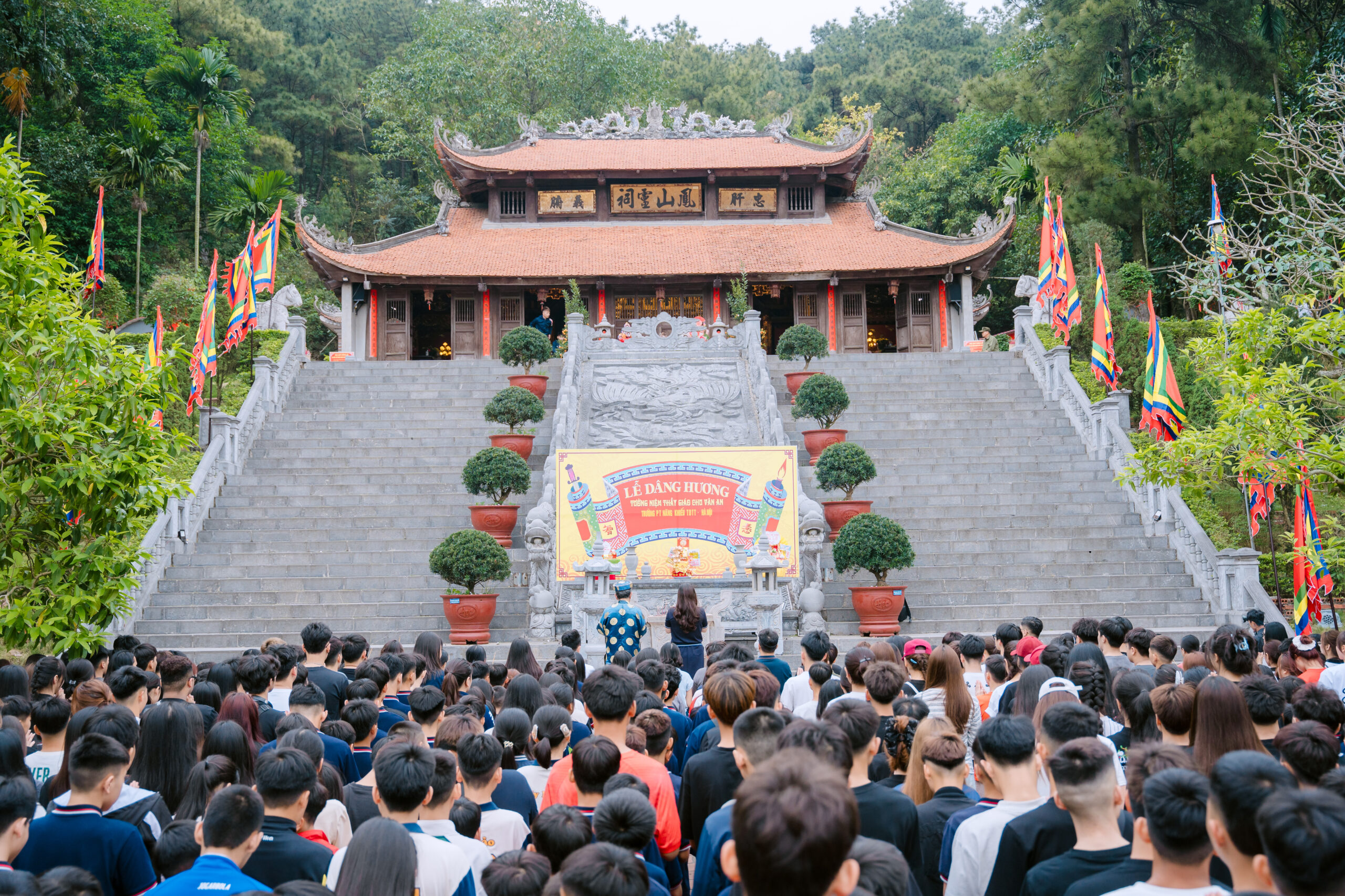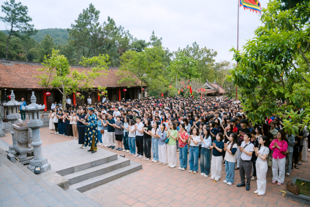 Các em còn được lắng nghe thuyết minh về cuộc đời và sự nghiệp của Thầy, tìm hiểu ý nghĩa của 112 bậc đá và các bức phù điêu Long Phượng – những công trình kiến trúc mang đậm giá trị văn hóa tâm linh. Từng bước chân trên con đường dẫn vào đền, từng làn khói hương bay lên trong gió – tất cả như kéo các em gần hơn với một trang sử hào hùng của dân tộc.